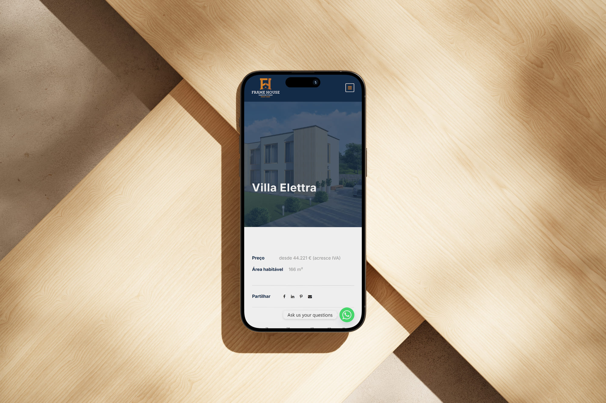 Development of the web platform for the representation of Frame House in Portugal. The project aimed to highlight the value proposition of the prefabricated wooden house construction type, as well as the different models.